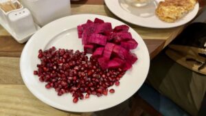 - 朝食は全てフルーツたっぷりホテルバイキング(毎朝、本格エスプレッソマシーンによるカフェオレなどコーヒー1杯付き、紅茶やレモンジンジャーティーなど飲み放題)