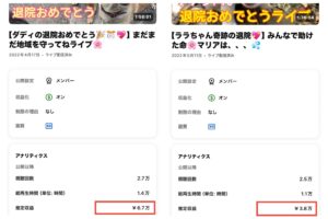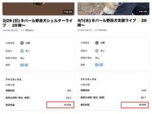 以下の通り、以前は一度ライブを行えば4万、6万と収益があったのに、
